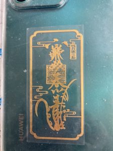 Xuanxue staat in China niet gelijk aan religie. Het valt b.v. niet onder het Bureau voor Religieuze Zaken. De overheid staat het toe, zij het dat de autoriteiten er wel nauwgezet op toezien dat het niet uit de hand loopt. Xuanxue staat ook niet in tegenstelling tot de academische of seculiere kijk op de wereld. Voor veel jongeren biedt een extra steun, naast de andere zaken waarop zij steunen, zoals hun opleiding. Tijdens mijn jongste reis door China bezochten we een Confuciustempel in Gansu. Naast de filosoof zelf werd daar ook de god van de wetenschap, Wenchang, vereerd. Het liep tegen de tijd van de nationale toelatingsexamens voor de universiteit (gaokao) en veel kandidaten hadden rode slingers gekocht en aan een boom voor de hal met het beeld van Wenchang gehangen, als gift aan de god om hen met goede cijfers voor het examen te laten slagen. Een meisje was net op bezoek en knielde devoot voor Wenchang. De foto bij deze paragraaf toont de achterkant van mijn telefoon. U ziet een amulet dat mijn vrouw eind vorig jaar in de tempel van de Vuurgod in Beijing voor mij kocht, toen we vernamen dat 2025 voor mensen geboren in een jaar van de aap (zoals ondergetekende) een ongunstig jaar zou zijn. Ik schrijf dit op 2 oktober. Het jaar is zeker nog niet om, maar tot nu toe is grote pech mij inderdaad bespaard gebleven.