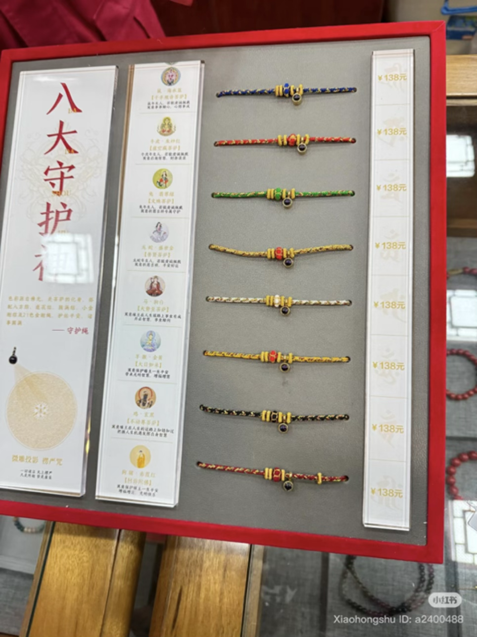 Amuletten aangeboden in een tempel; foto Xiaohongshu (disclaimer)
