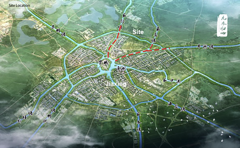 Jiaxing ligt aan de benedenloop van het Taihu-meer en fungeert als afvoerkanaal voor overstromingen uit de Hangzhou-Jiaxing-Huzhou-vlakte. 85 % van de waterbronnen komt uit stroomopwaartse gebieden, waardoor de stad zelf geen aanvoer van schoon water heeft. Wat het probleem nog verergert, is dat dit typische rivierennetwerk in het vlakke land meer dan 20.000 met elkaar verweven waterwegen omvat die functioneren als haarvaten, met een uiterst slechte watermobiliteit waardoor ze gemakkelijk vervuiling verspreiden.