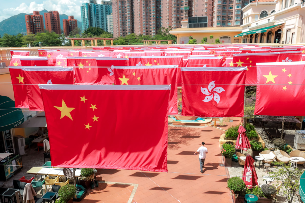 De vlaggen van China en de Speciale Bestuurlijke Regio Hongkong disclaimer foto China Daily/Andy Chong