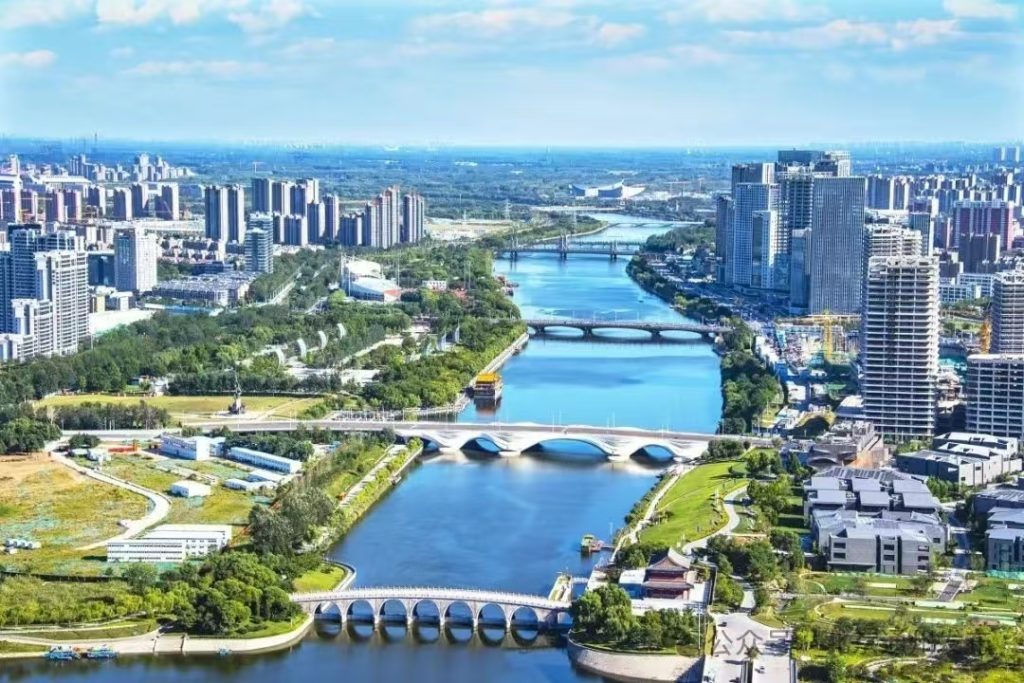Het district Tongzhou, Beijing. In het vroege voorjaar waar de Oriental Chemical Plant decennialang rook uitstootte, stroomt nu een nieuw soort energie uit de diepe ondergrond. Dit 11,2 km² grote district, dat het administratieve centrum is van Beijing, werd omgevormd tot een ‘koolstofneutraal park voor het hele gebied’. Geothermische putten benutten de warmte van de aarde. Fotovoltaïsche (PV) panelen op daken vangen zonlicht op. Samen vormen ze een complex energienetwerk dat grote gebouwen volledig van groene stroom voorziet, waardoor de jaarlijkse uitstoot van kooldioxide met ongeveer 11.000 ton wordt verminderd. De omvorming van dit industrieterrein tot een ecologisch knooppunt weerspiegelt een bredere verschuiving in de stedelijke ontwikkeling van China.
